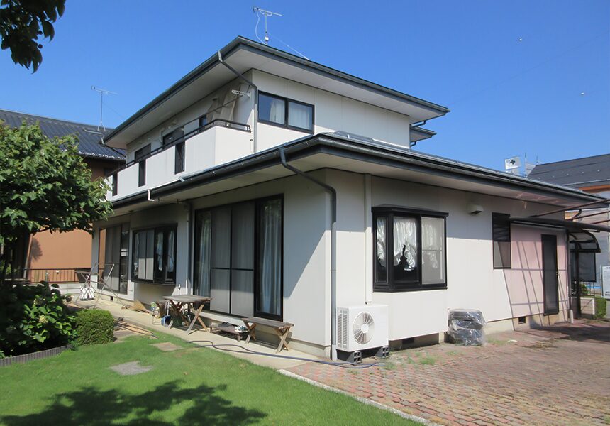 外壁はサイディングを上貼りすることで、明るい印象となっています。合わせて軒天等も修繕しています。
