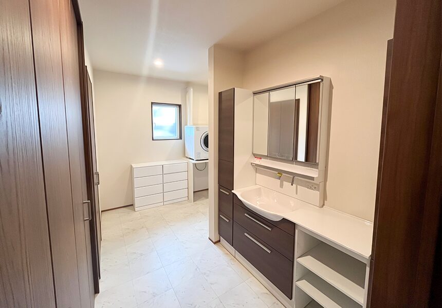 浴室までつながる動線で、広々とした開放的な空間へ。